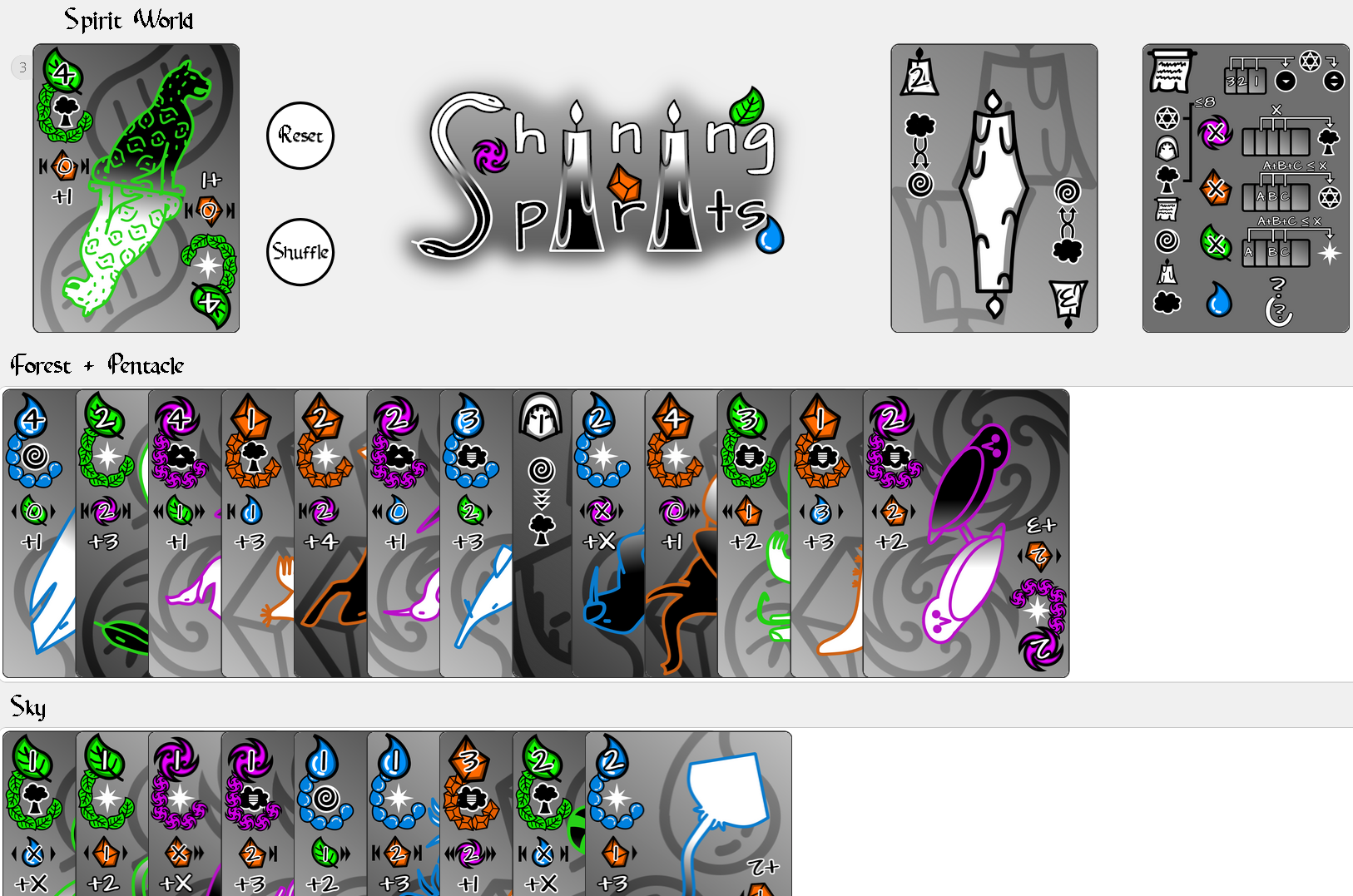 Shining Spirits is a 27-card game for one player designed by @Qu1rr3l . It is an entry in the 2026 In-Hand Game Design Contest.